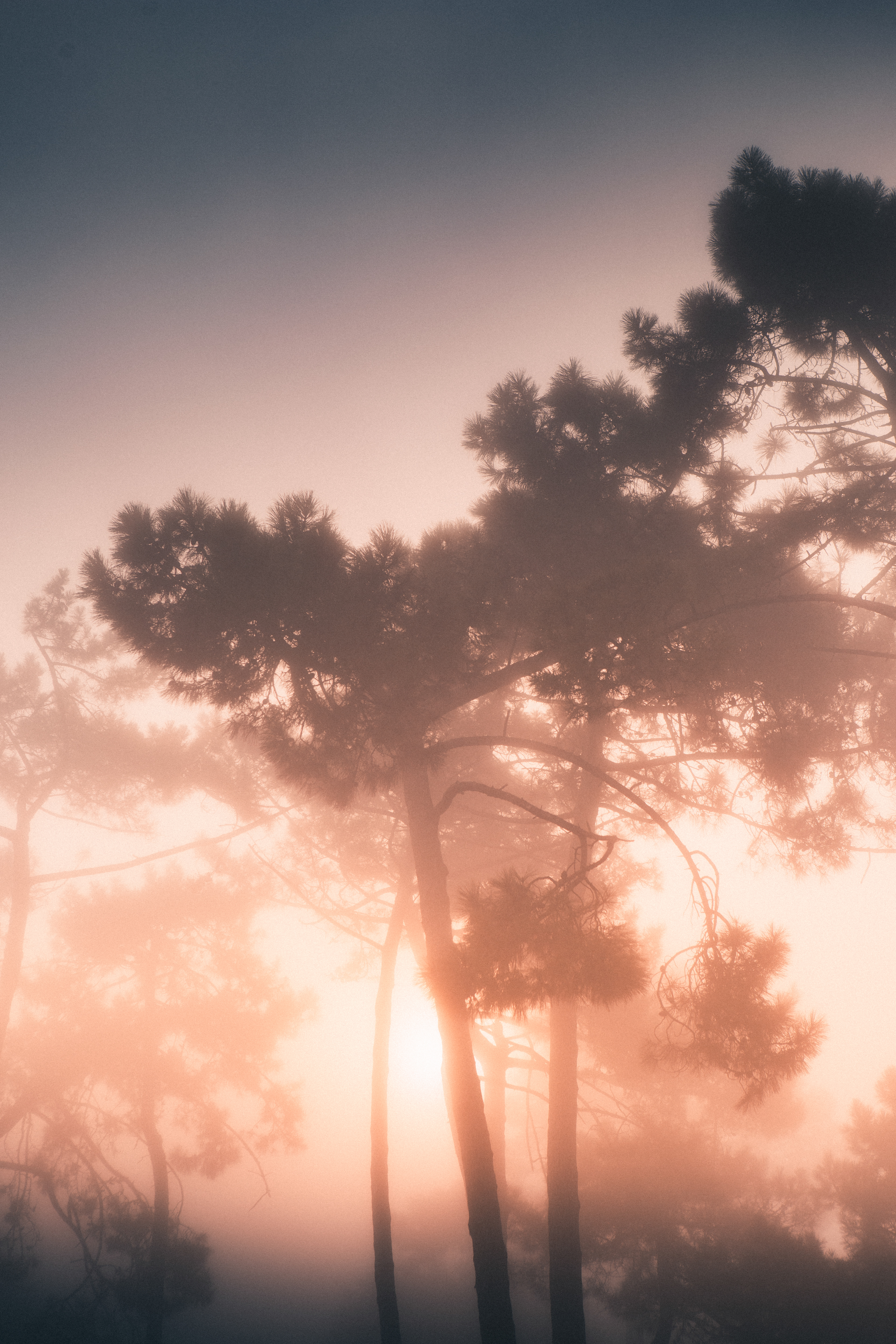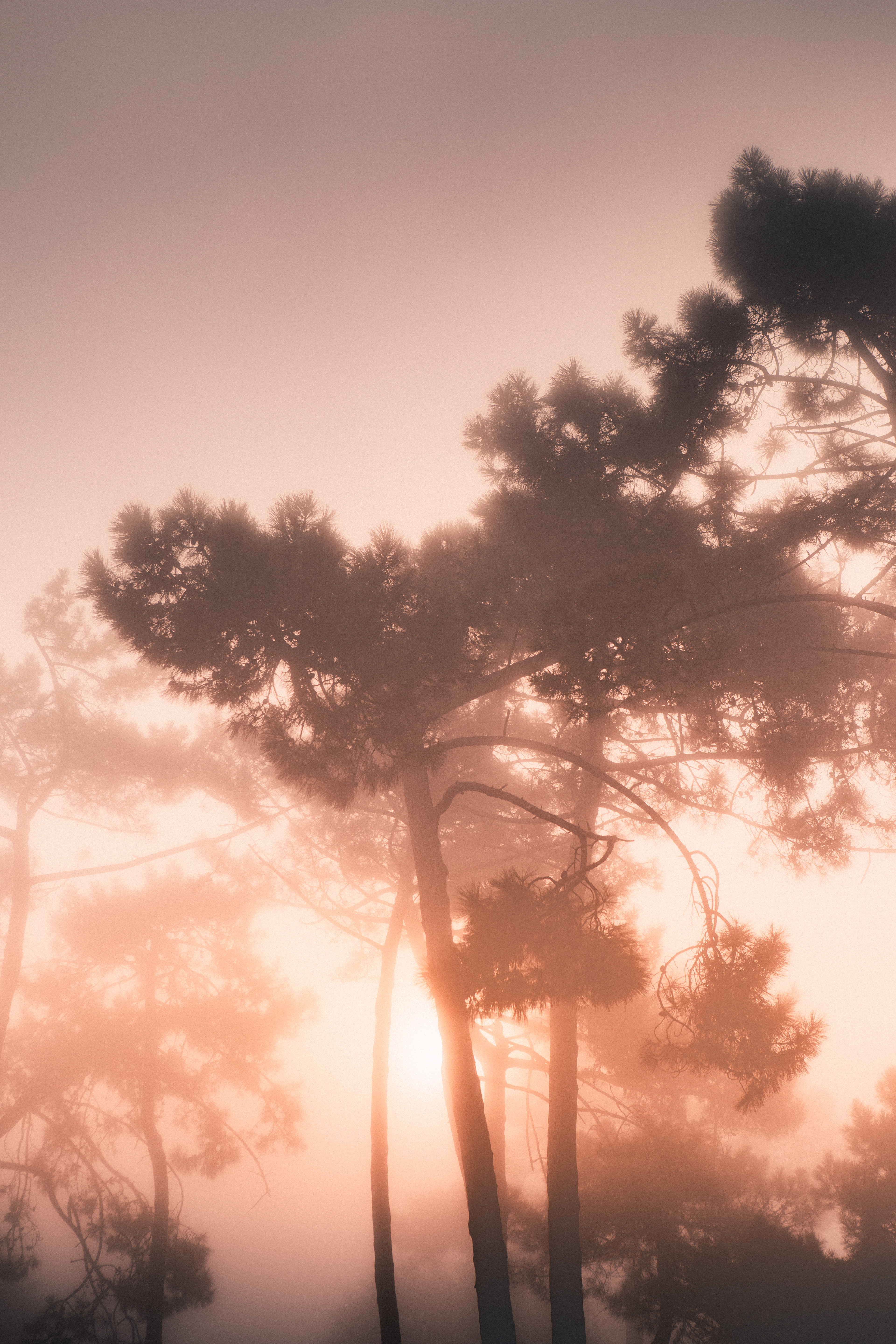 Un matin, la brume, le soleil et les pins se sont donnés en spectacle. Les éléments nous offrent parfois des spectacles étonnants. Il faut se donner le temps de l'observation et de contemplation.